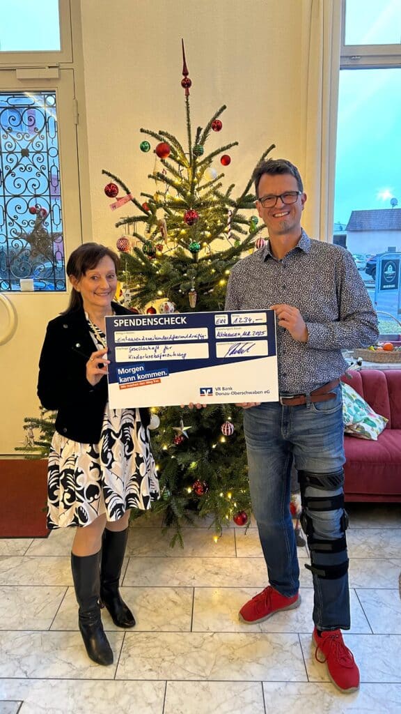 Als langjähriger Förderer überreichte Matthias Baur auch dieses Jahr zur Vorweihnachtszeit einen großzügigen Scheck über 3.000,- Euro an die Gesellschaft für KinderKrebsForschung.